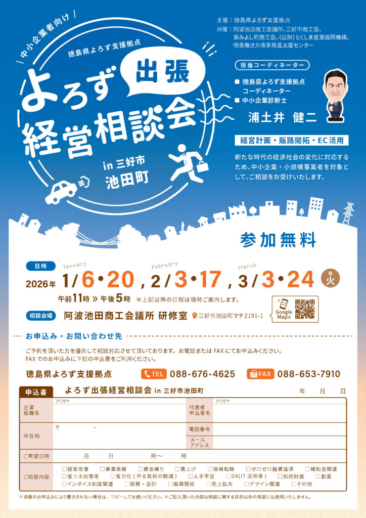 【火曜 1/6・20, 2/3・17, 3/3・24】in 阿波池田商工会議所