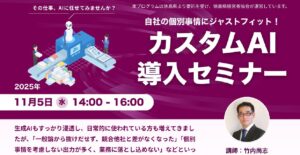 | 開催日時 | 令和7年11月10日(月) 13:30〜15:00 セミナー後、個別相談会 15:00〜 ※個別相談会は順次ご案内いたしますのでお時間をいただく場合があります。 |