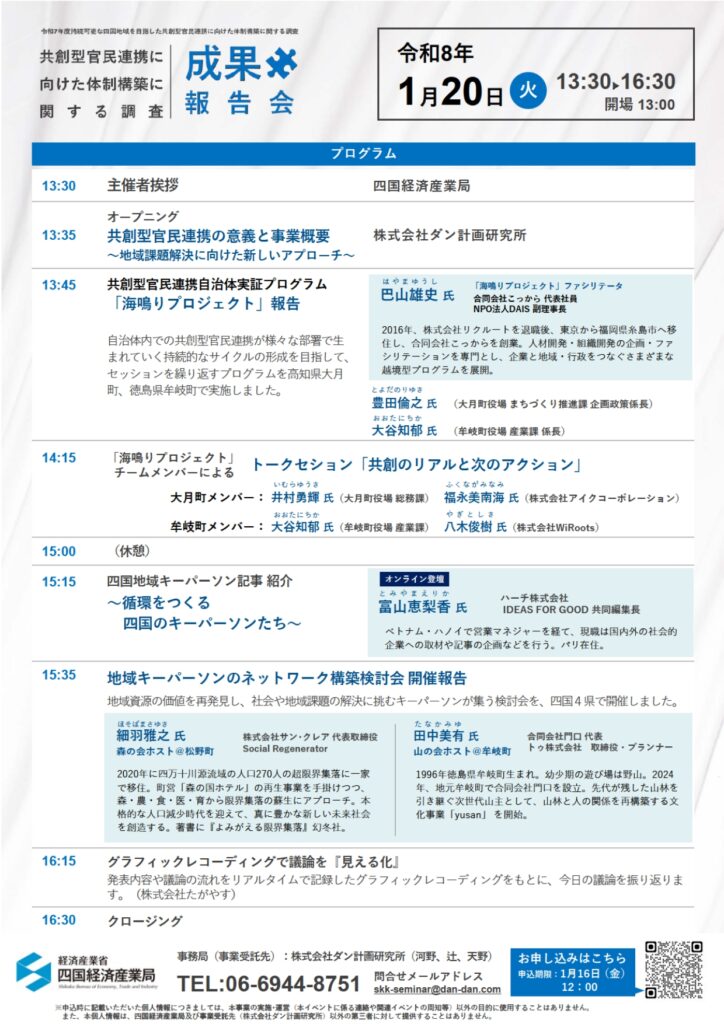 このたび、本調査に関する成果報告会を開催し、現場で得られた変化や学びを共有するとともに、共創を「地域に根付く仕組み」へ進化させるための視点やヒントをお届けします。